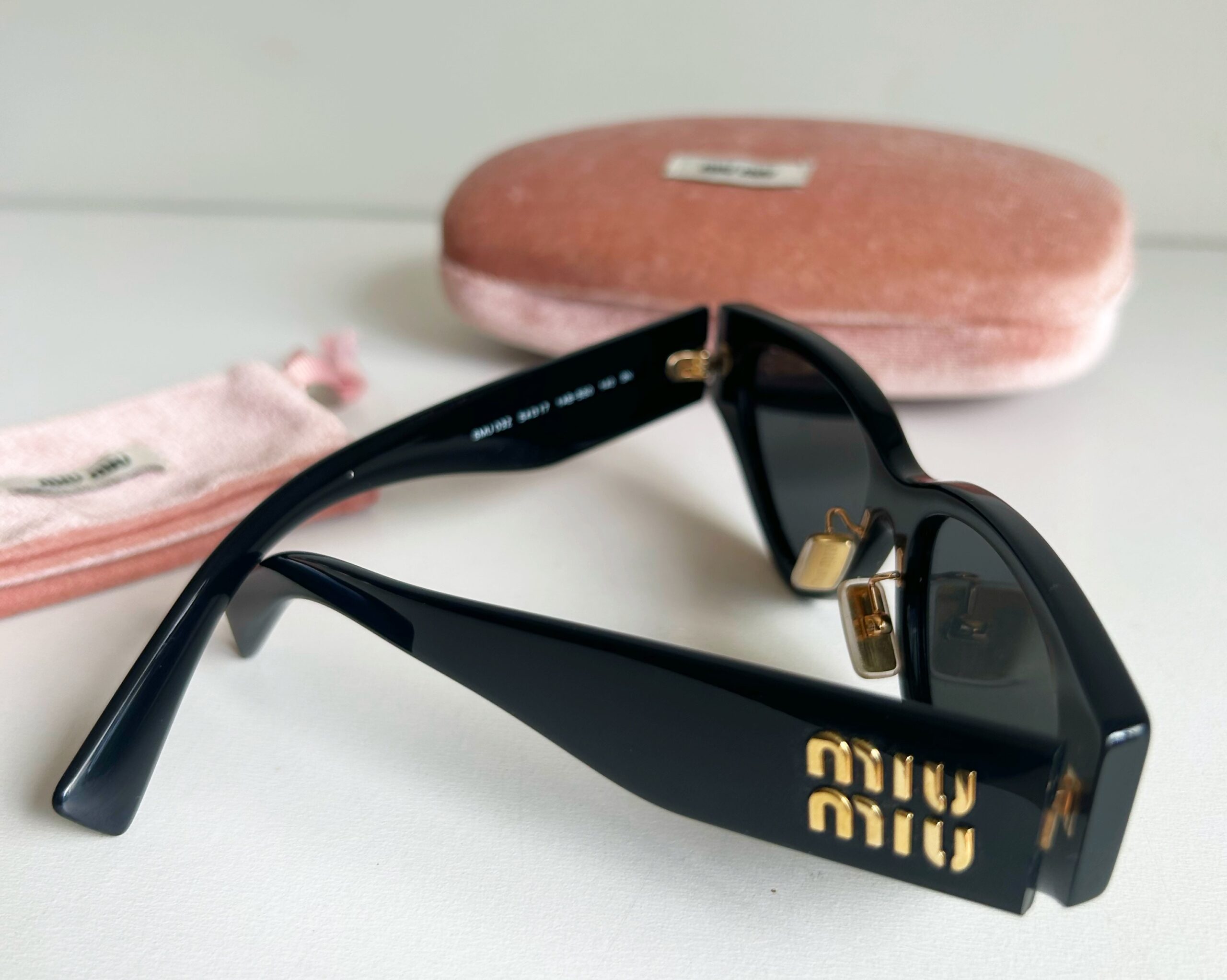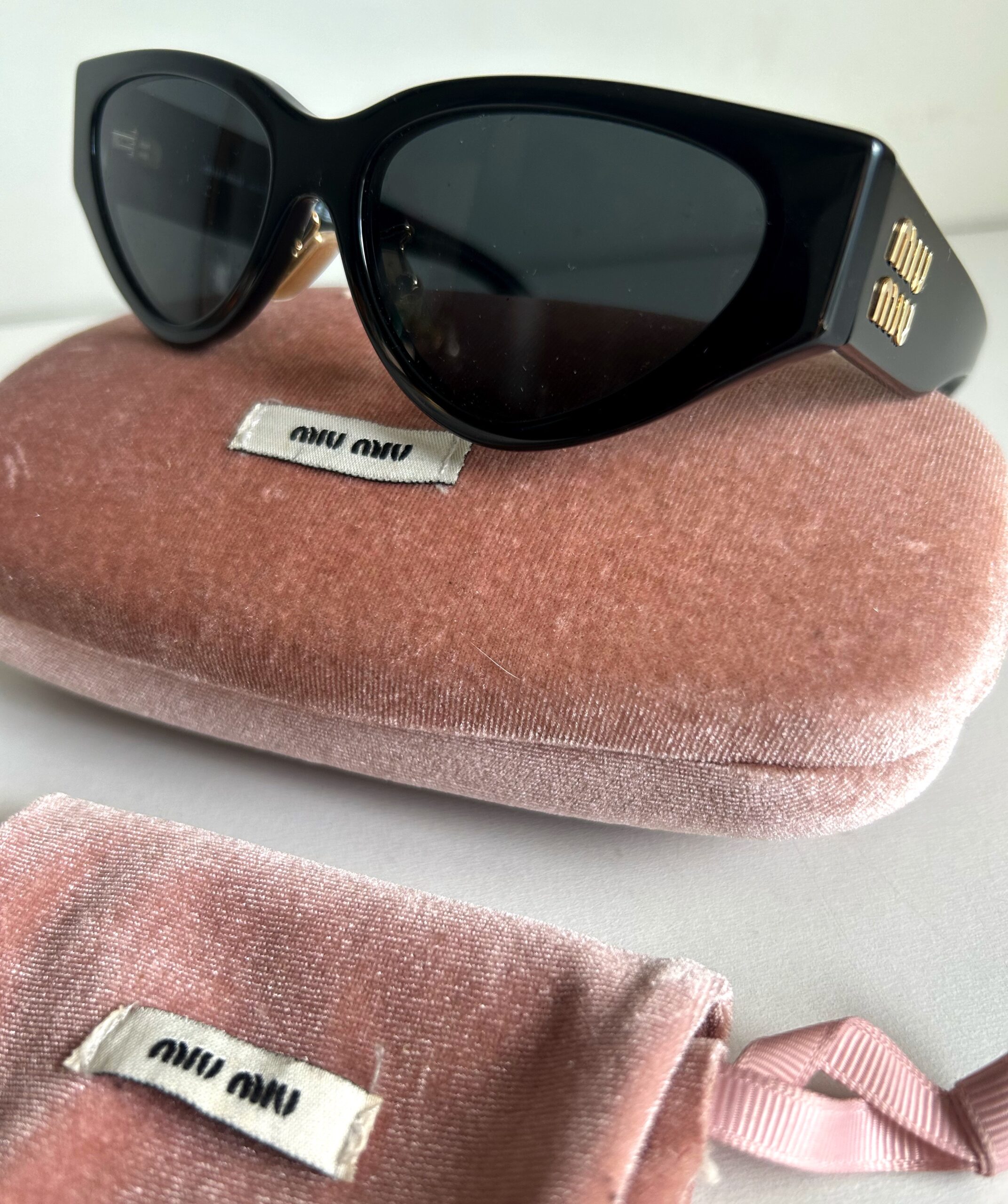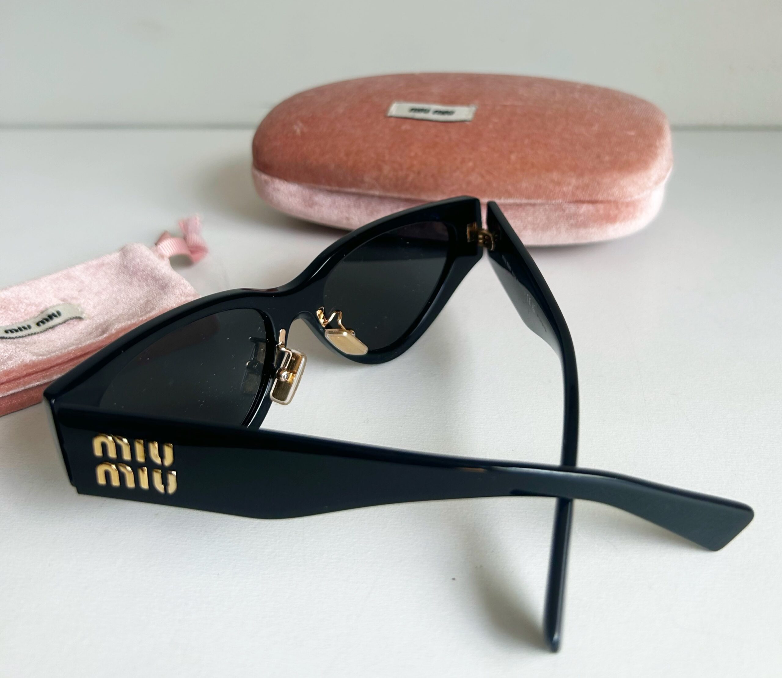 Óculos de sol Miu Miu original, modelo gatinho, coleção atual. Produzido em acetato na cor preto com detalhes da logo na lateral em dourado, Em perfeito estado de conservação. Acompanha case.