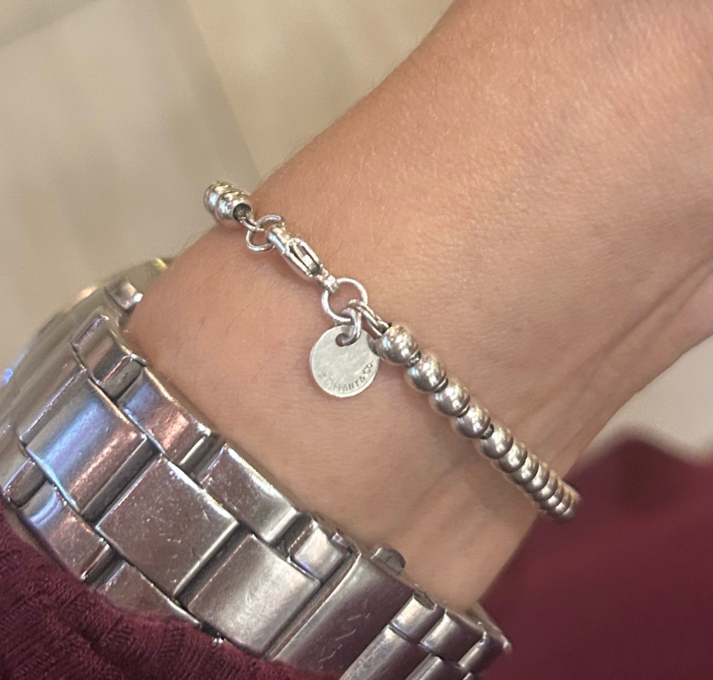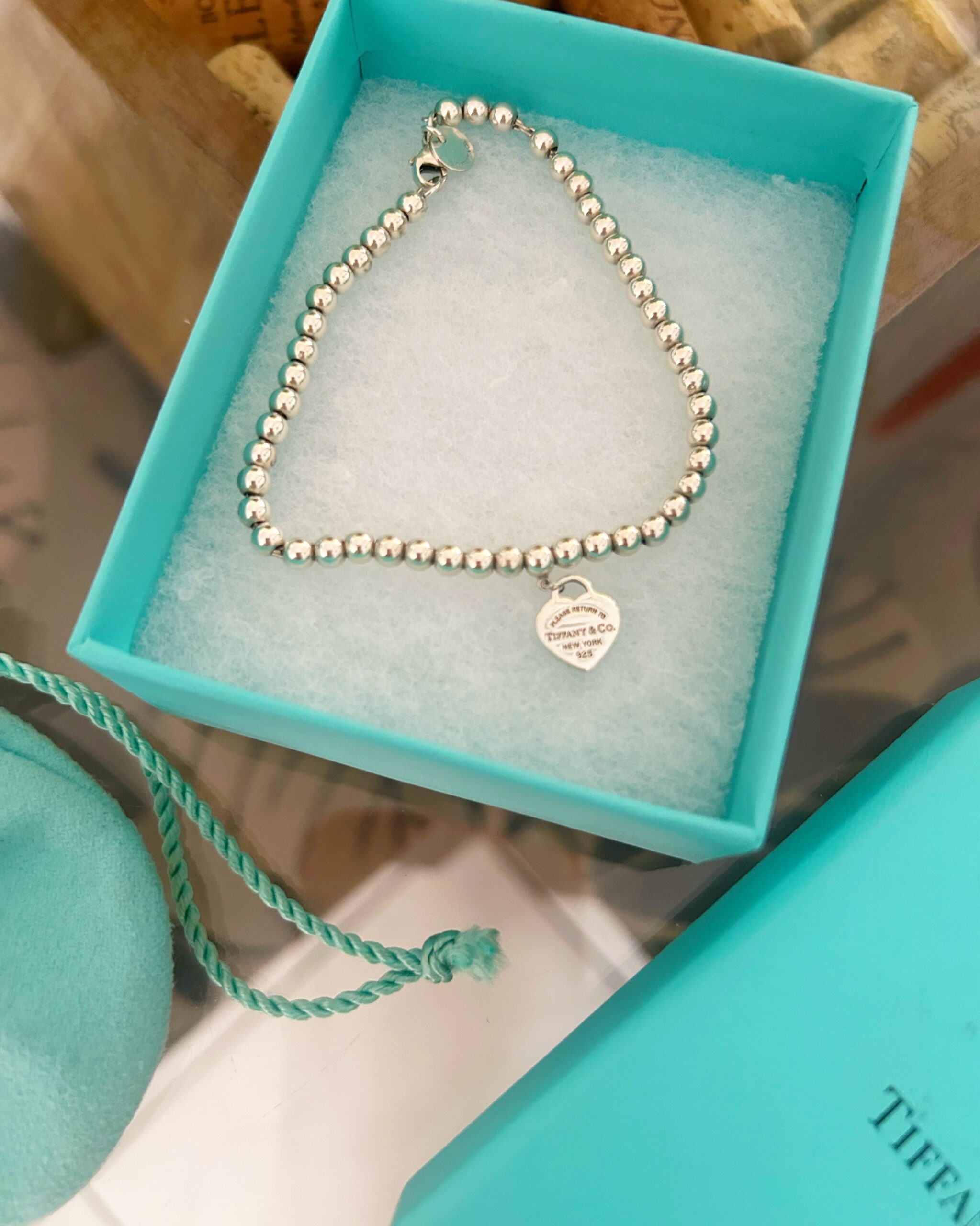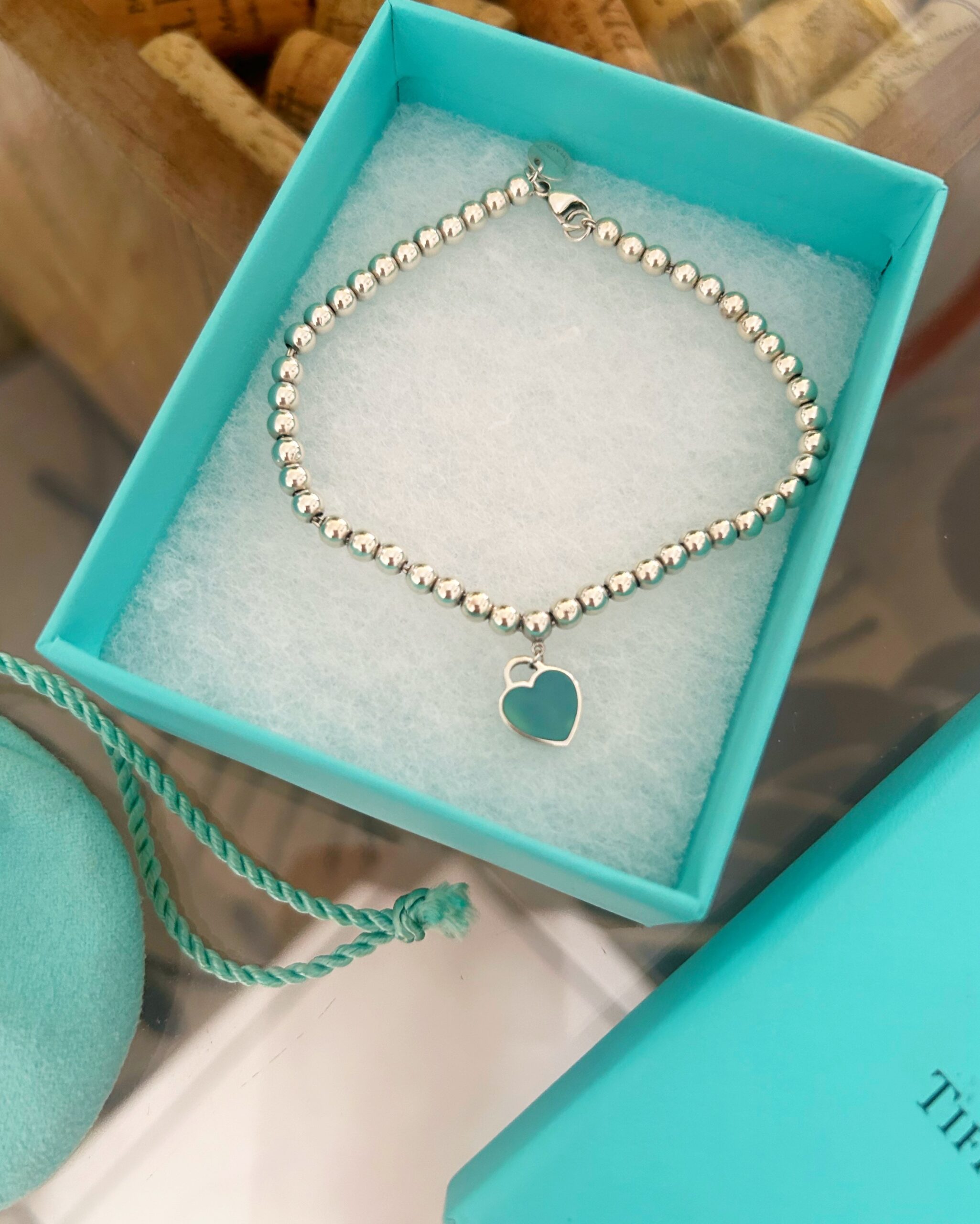 Pulseira em contas Tiffany&C0 original. Confeccionada em prata 925, coleção Return to Tiffany. Em ótimo estado de conservação, acompanha saquinho e caixa da marca.
