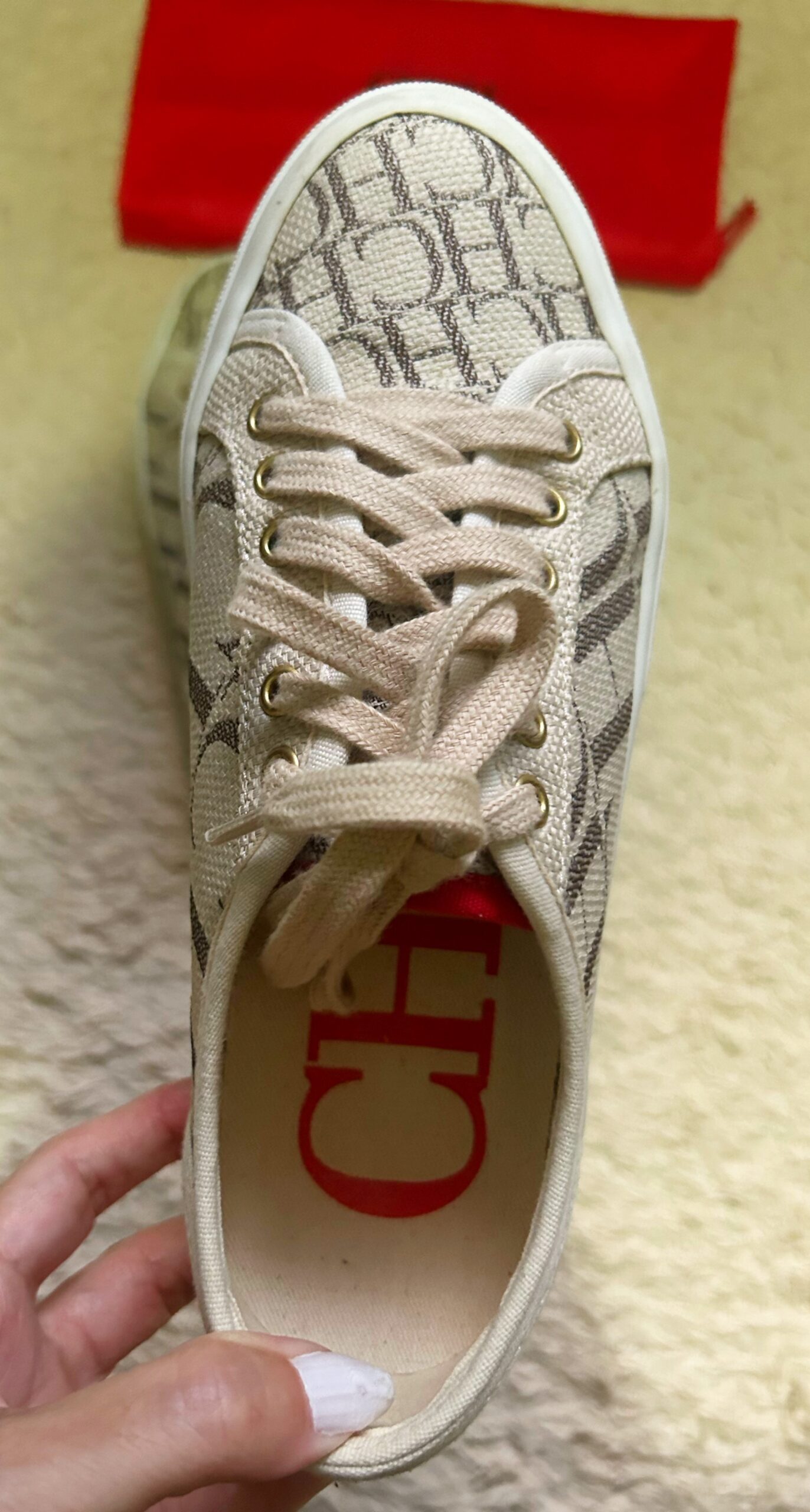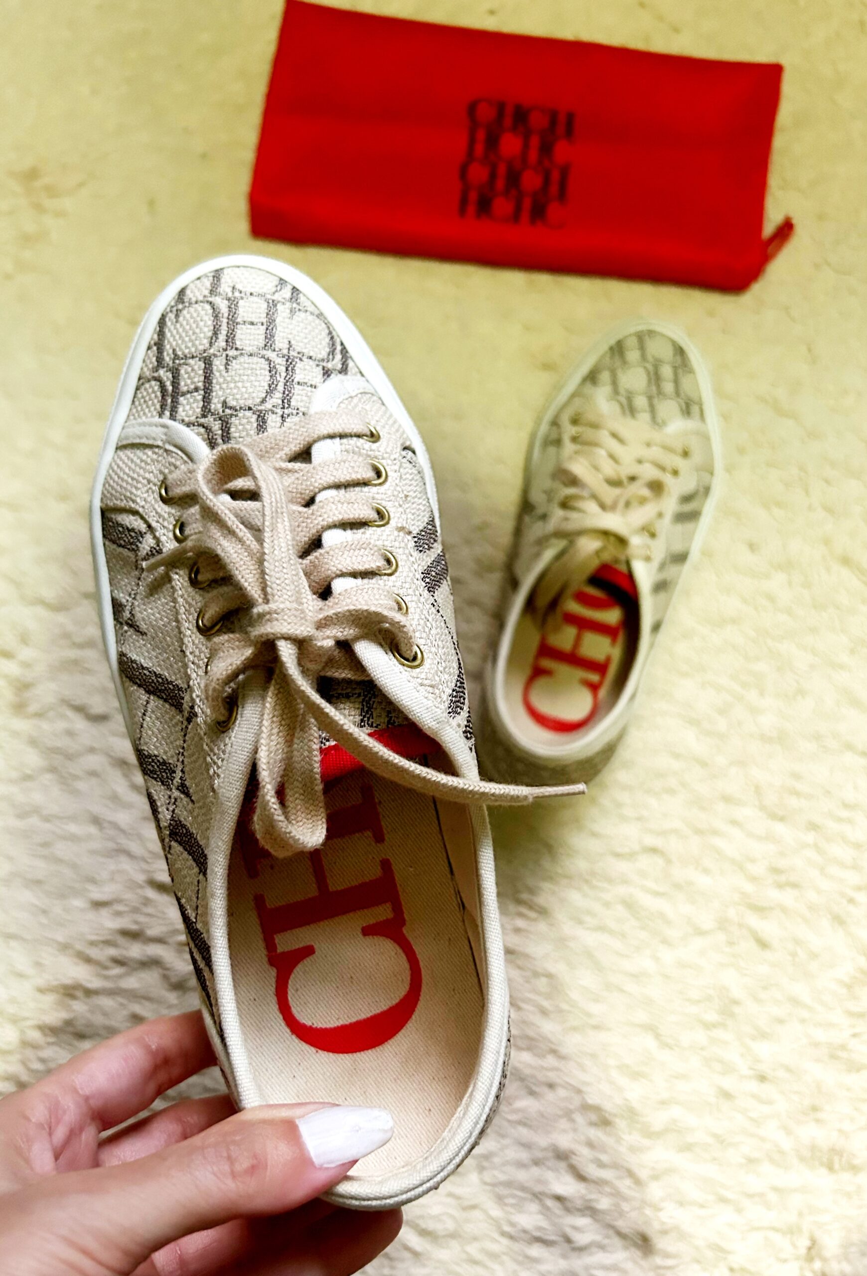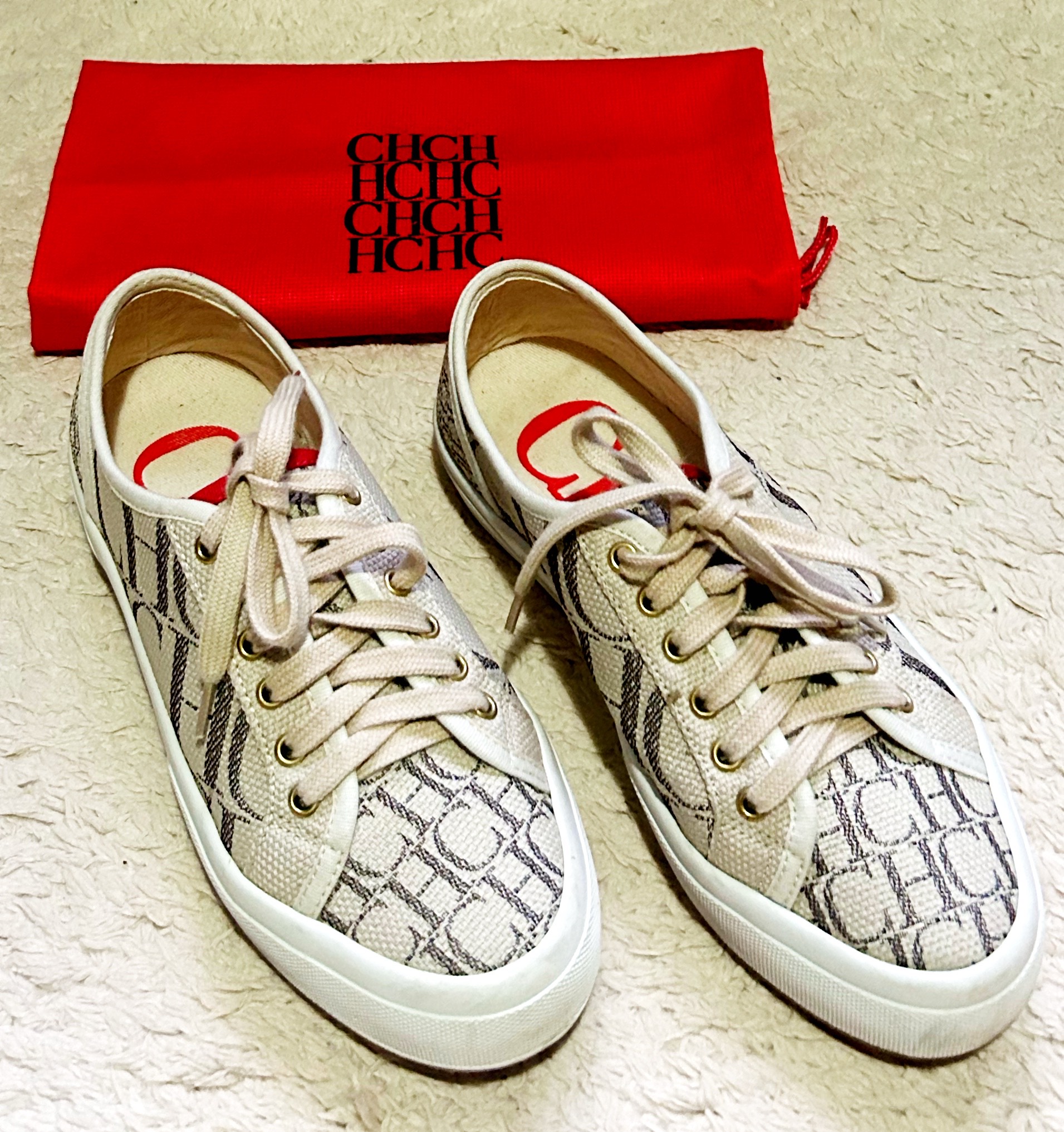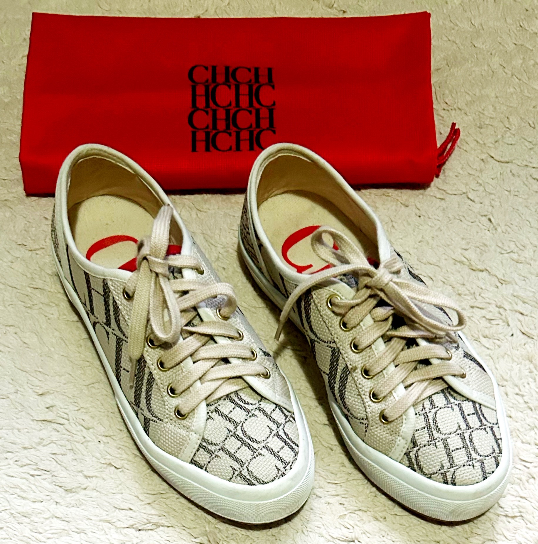 Tênis Carolina Herrera original. Produzido em jacquard com o monograma da marca. Em excelente estado de conservação, pouco usado. Acompanha dust bag.